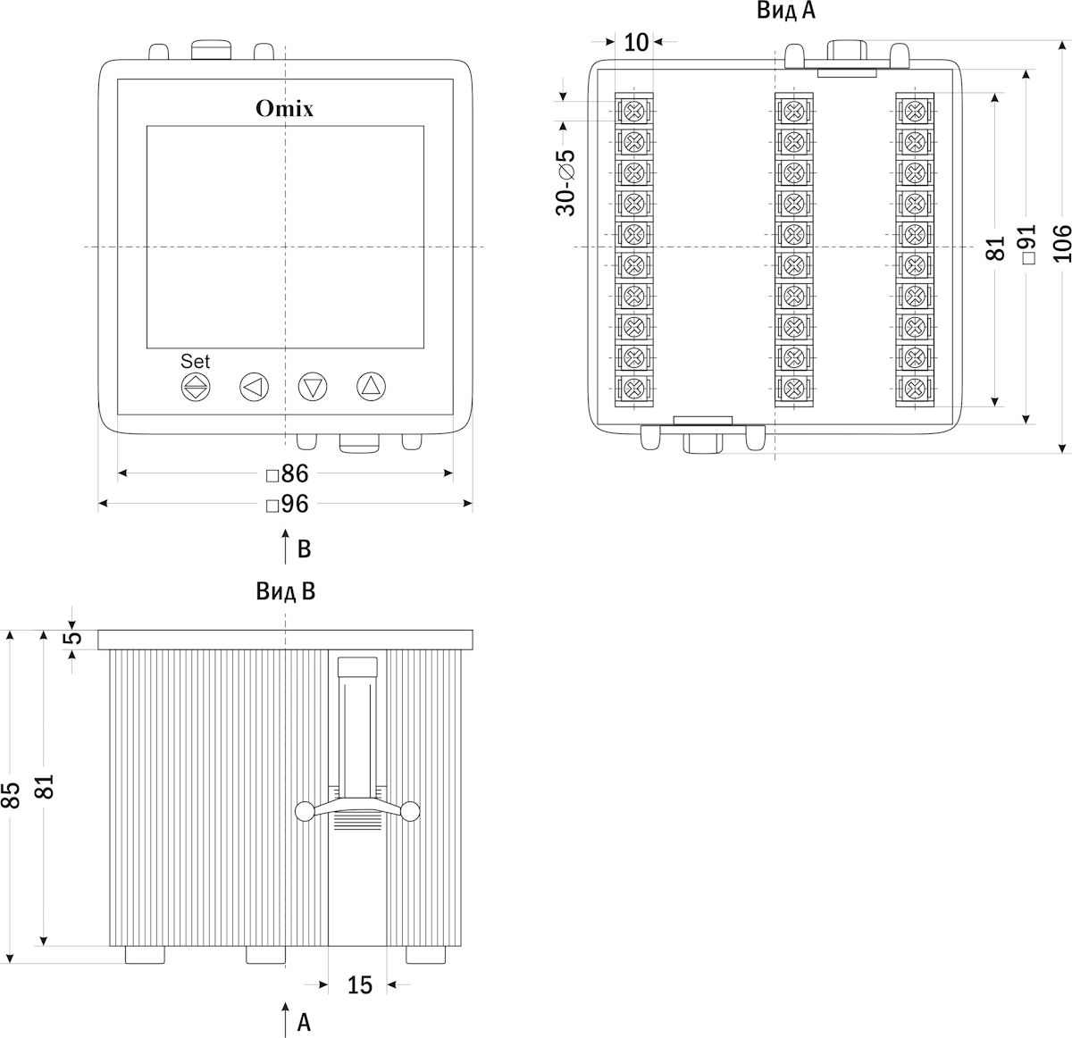 Мультиметр трехфазный щитовой Omix P99-MY-3-4K-RS485 для измерения и индикации электрических параметров трехфазной сети переменного тока: силы тока, напряжения, частоты, мощности и коэффициента мощности, cos φ и энергии