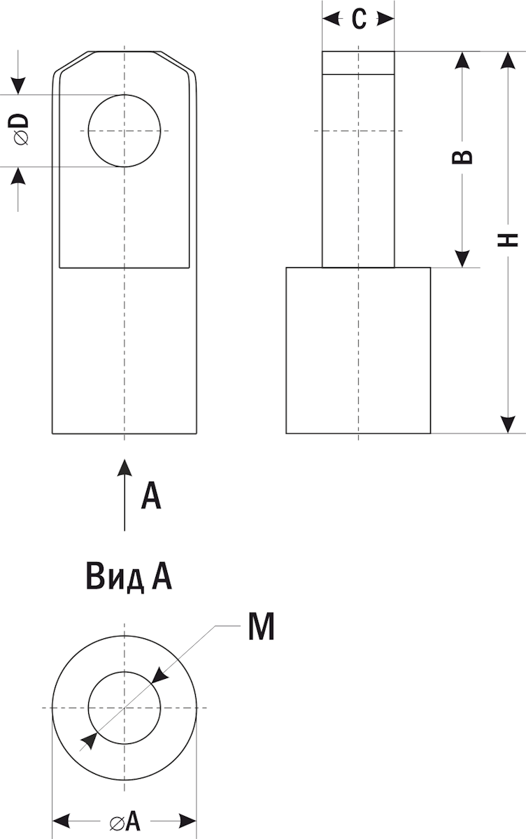 Для пневмоцилиндров с резьбой М6...М42 (размер М, см. чертеж) и диаметром поршня 16...250 мм